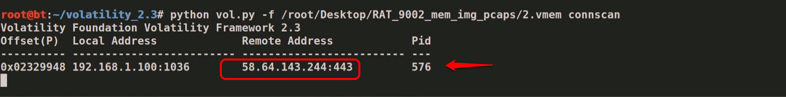 The below screenshot confirms that the malicious communication was made by the pid 576 (as detected by the plugin).